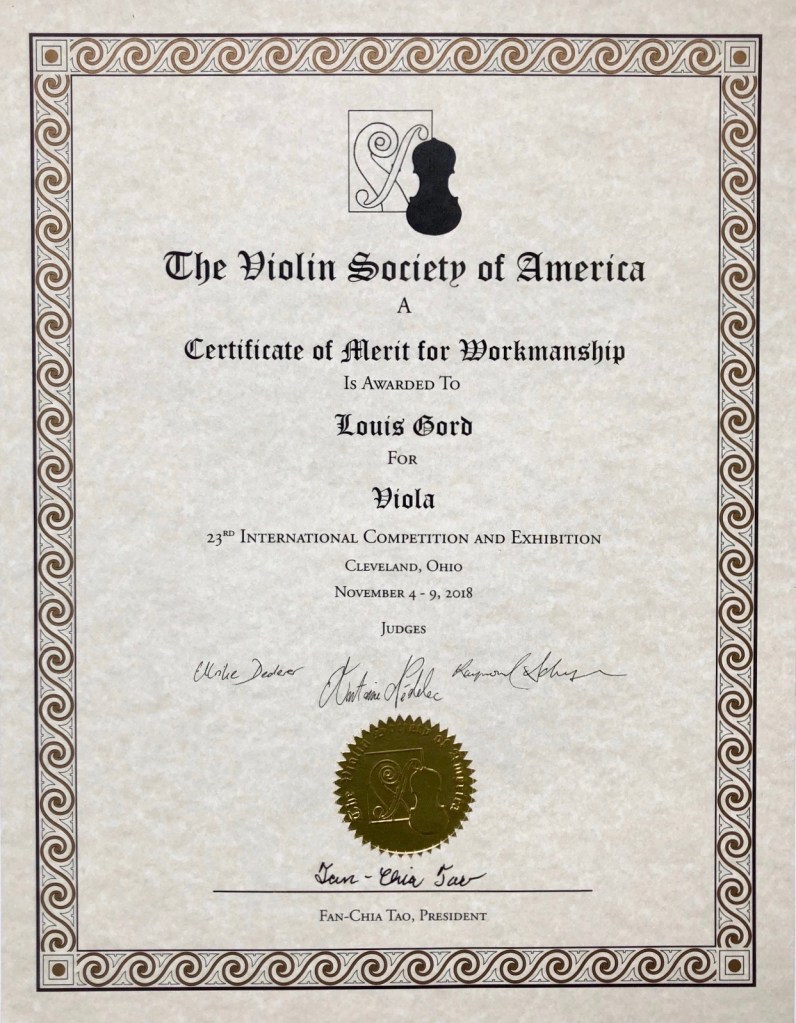 Avec Isabelle Wilbaux. Certificate of Workmanship Alto.
